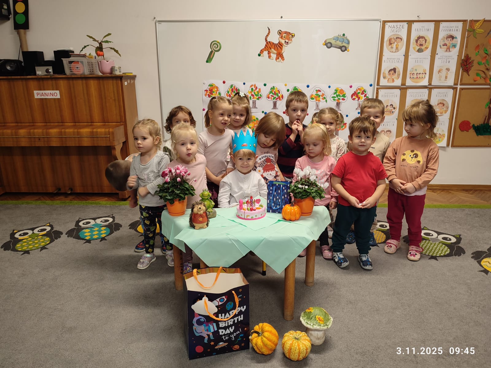 9.00 - 10.00 - Zajęcia dydaktyczno-wychowawcze, realizacja podstawy programowej w zajęciach organizowanych z całą grupą, wspomaganie rozwoju intelektualnego dnieci. Wspieranie aktywności dzieci w różnych sferach rozwoju. Stwarzanie warunków do poznania świata w bezpiecznym i inspirującym otoczeniu.